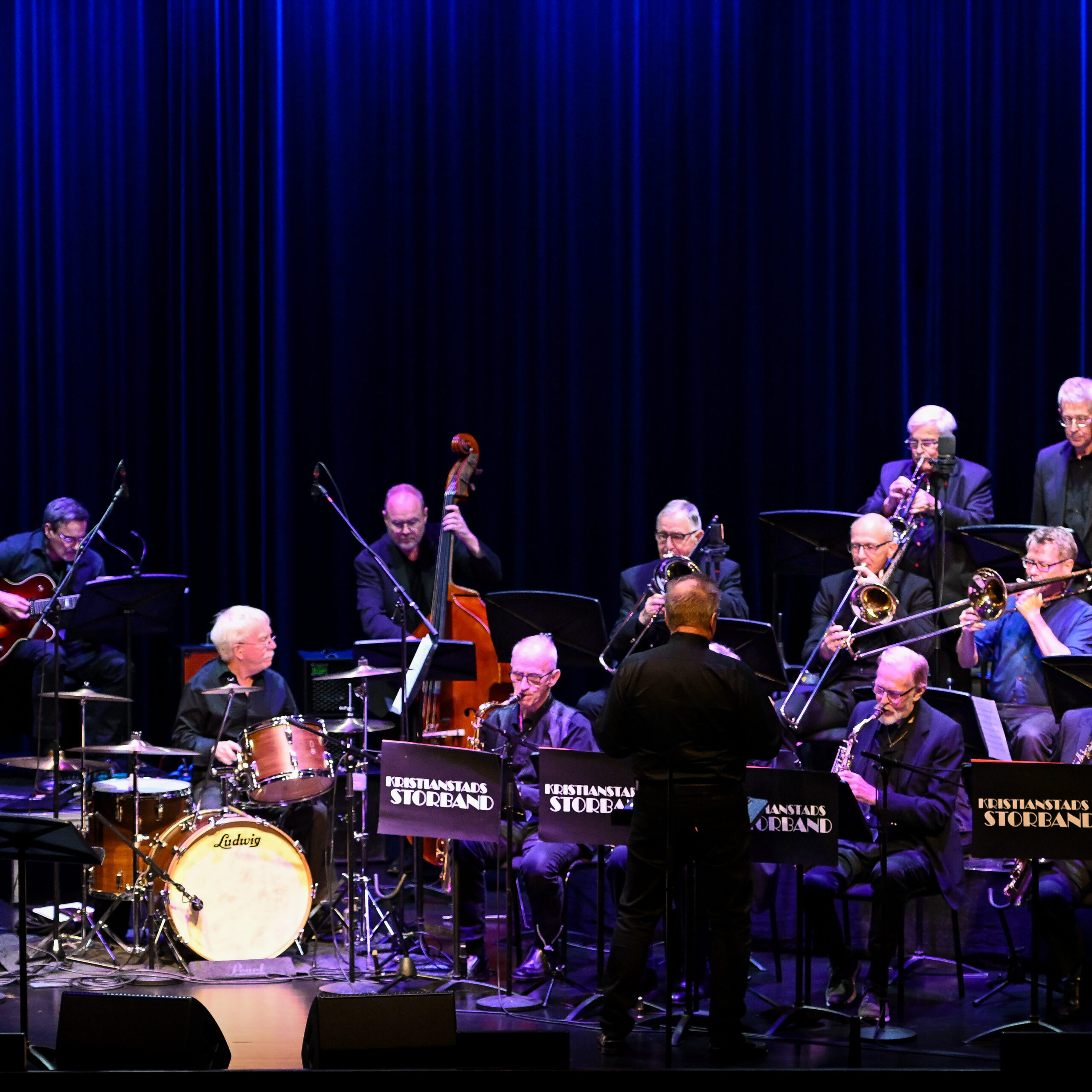 Kristianstads Storband bildades 1972 av Gert-ÅkeWalldén. Idag leds bandet av Loffe Sturesson och tyngdpunkten ligger fortfarande på den klassiska storbandsmusiken men repertoaren har breddats och består idag även av storbandsmusik av nytt snitt som tilltalar en publik i alla åldrar. Bandets repertoar består av allt från Duke Ellingtons och Count Basies musik till hårt svängande musik av Gordon Goodwin. Röda Salongen. Arr. Hässleholms jazzklubb. Medverkar gör också Hanna Elwe, sång och Mattias Carlsson, klarinett, som solister.